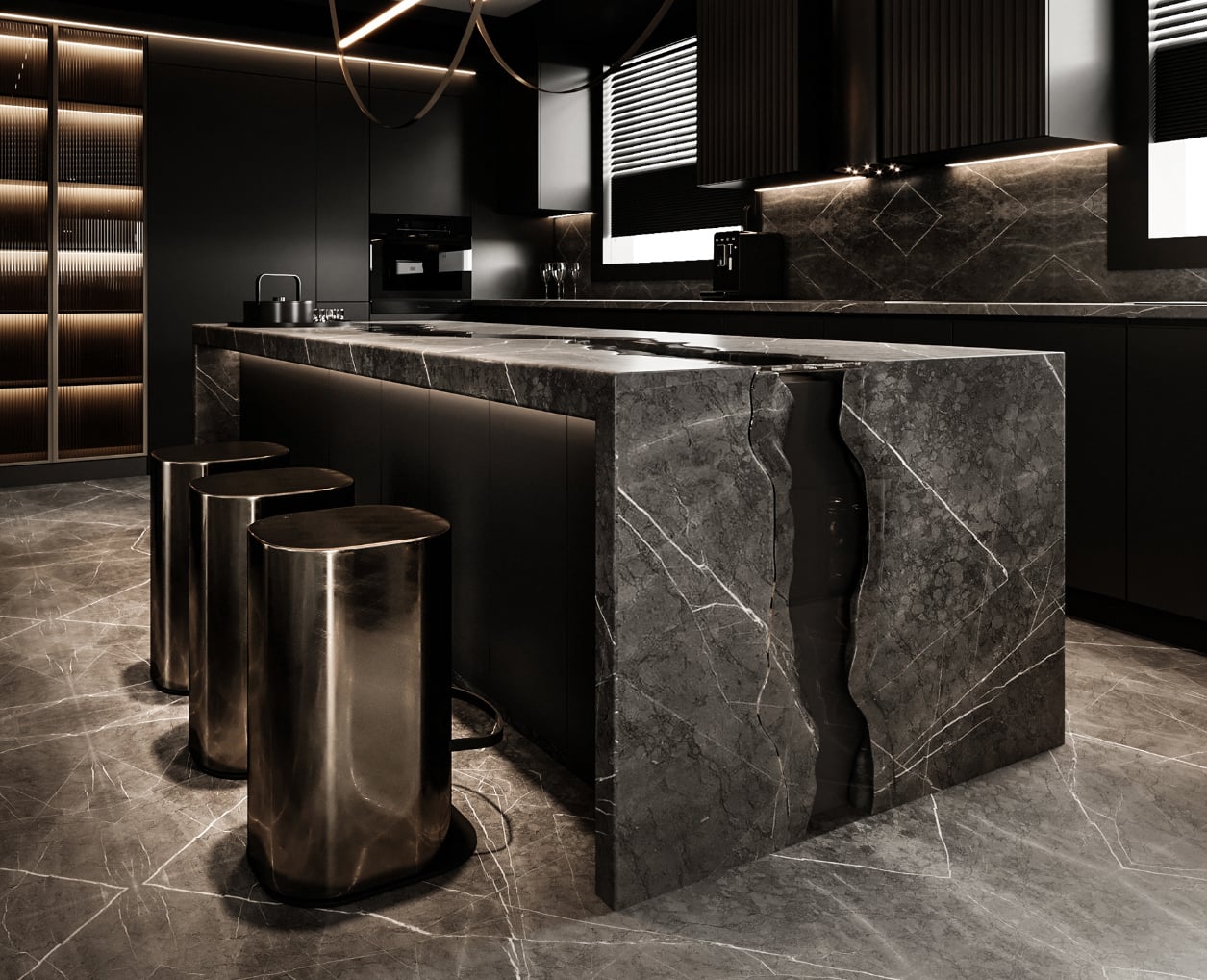 Imagine cooking and entertaining your loved ones in an environment where natural beauty meets impeccable functionality. A limestone or marble island becomes the epicenter of your kitchen, transforming it into a space that reflects your sophisticated lifestyle and appreciation for exceptional craftsmanship.